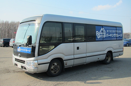 許可車乗降所に当社提携バス「パーキングガレージ」のバスが到着しましたらご乗車ください。 店舗と空港を常時循環しているため、5分から10分程お待ちいただく場合がございますのでご了承ください。